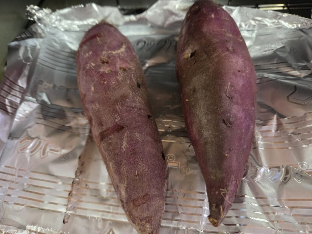 さつまいもは水洗いにして水気をきって200度のオーブントースターで分焼きました。30分焼いてひっくり返して20分ほど焼いて出来上がり!